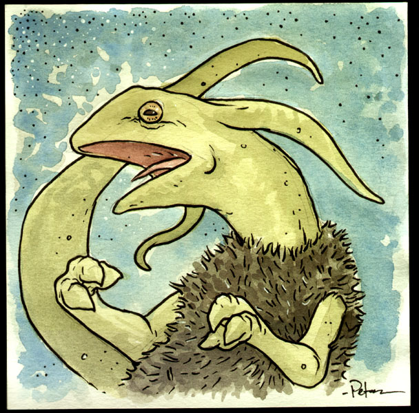 The 2nd is a redesign of a lizard creature I wanted to do as a puppetry project in the late 90's. These lizard guys would be a party of adventurers in the arctype tradition of fantasy RPGs. I still hope to build some of these puppets some day...