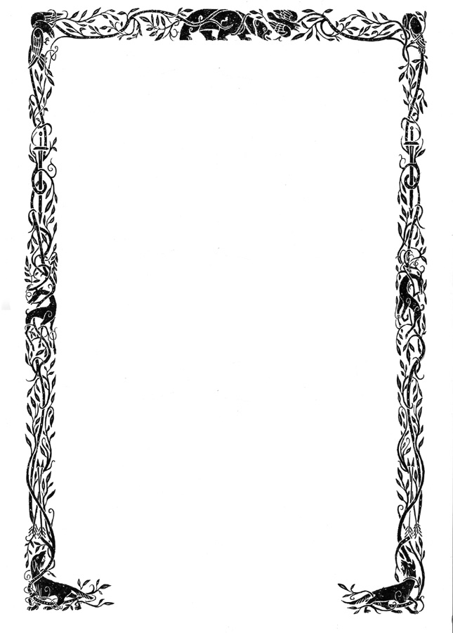 The next inked piece was the border. I pieced together two different borders from Pixar to get the design to fit the perimeter of my piece. The animals were all from the tapestry in the movie, and to fill in the tall side bits, I found a few tapestry borders they used in some promotional art for the film. I hand inked the border because I wanted the piece to work as a whole and not seem like parts of it were photoshoped together. I wanted to hand distress the design in a way that ties it together with the inkwork on the characters. This piece is also 17" x 24" and had to be scanned in parts.