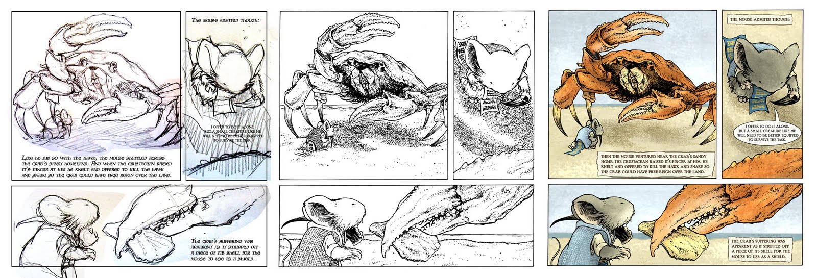 2012 FCBD Story: The Tale of Baldwin the Brave:My story for this year's Free Comic Book Day book from Archaia followed the tradition I set last year with the story being some sort of morality tale told to a younger version of one of my main characters. Last year's story was a bedtime tale being told to young-Kenzie, and I did a post about the process of creating that story last year. Saxon was the recipient of this year's story, but before we go further...in case you have not found a copy of the 2012 FCBD book or you didn't get around to reading it yet, you can follow this link to have it read to you aloud: http://vimeo.com/mouseguard/mgbaldwinthebrave