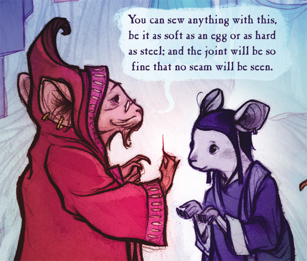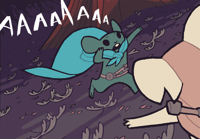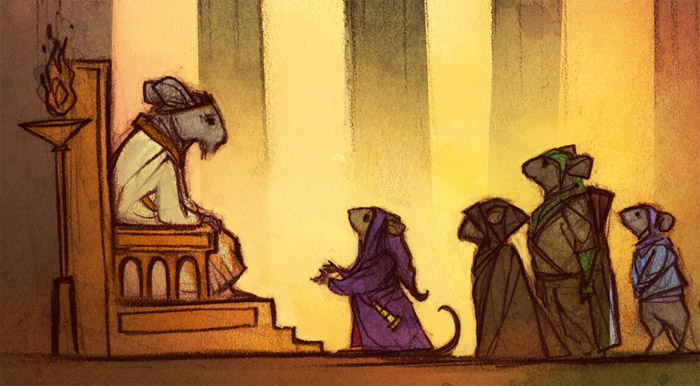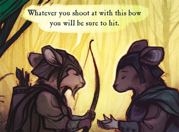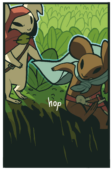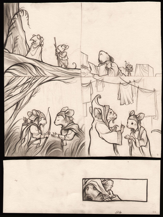 Charles: Initially I wanted to write a story with mice interacting with wolves. I went back and re-read all of the Mouse Guard books and found some references to wolves, but my ideas began to look like other mouse versus predator stories that were already told and I was also concerned my offering would fall more on the bland side of things. And it would have.So instead of a versus story I thought I'd make a buddy story and asked you what relationships would be like between mice and moles or rats. And you said something like mice probably wouldn't get along with moles well, that they'd dig up their housing foundations, and so I ran with that and worked it into and throughout the story.