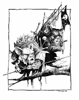 Charles: Ha ha yeah, kinda. Planning a story for someone else with a limited page count, I think it was a tough first time. I've always liked writing stuff for myself, whether it's just words on paper or in the computer or I want to draw them out, I still do, but I felt a bit nervous, and excited, contributing both story and art. Charles: Once you and I figured out what I was going to do I wrote down some captions that wound up in the middle of the story. They were the first things that came to mind and wound up staying through to the finish and then I worked through thumbnail drawings and wrote it out as I went along, if I remember it right. It kinda came together by itself in the end though. I do remember asking myself what I was focusing on concerning areas of the plot and why they were important, and then I made story around them. Like our main character's wooden sword, what it says about him that he made it and how he intends to use it and what his foes' weapons, what they are or how they were probably acquired and how they're intended for use, say about both his foes and him in contrast.